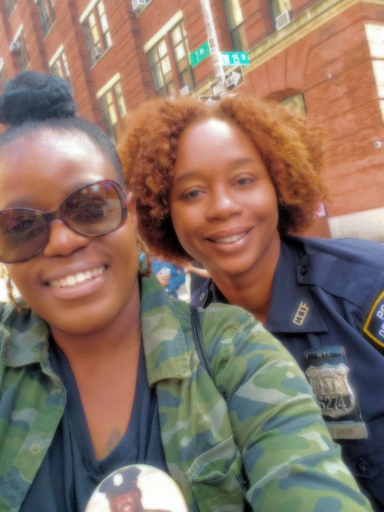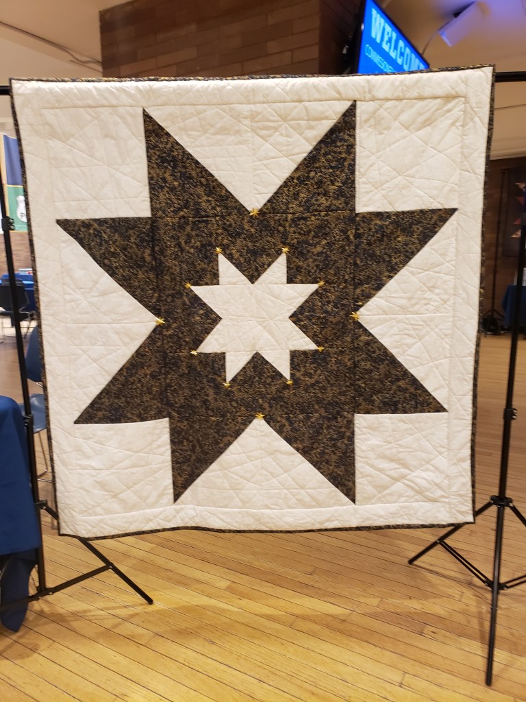 In addition, we showcased our latest quilt pattern, which is entitled the Law Enforcement Star. A raffle quilt was made of the law enforcement star and we were able to raise 305.00 for our organization [please see the photo above of the law enforcement star]. The funds will be used to purchase supplies so we can make more quilts [of course! 🙂 ]. If you’re interested in making a quilt, the law enforcement quilt pattern is located in the quilt pattern section of our website. NYPD Officer Beatrice won the raffle quilt. We hope to have more quilts to raffle at our next quilting bee!