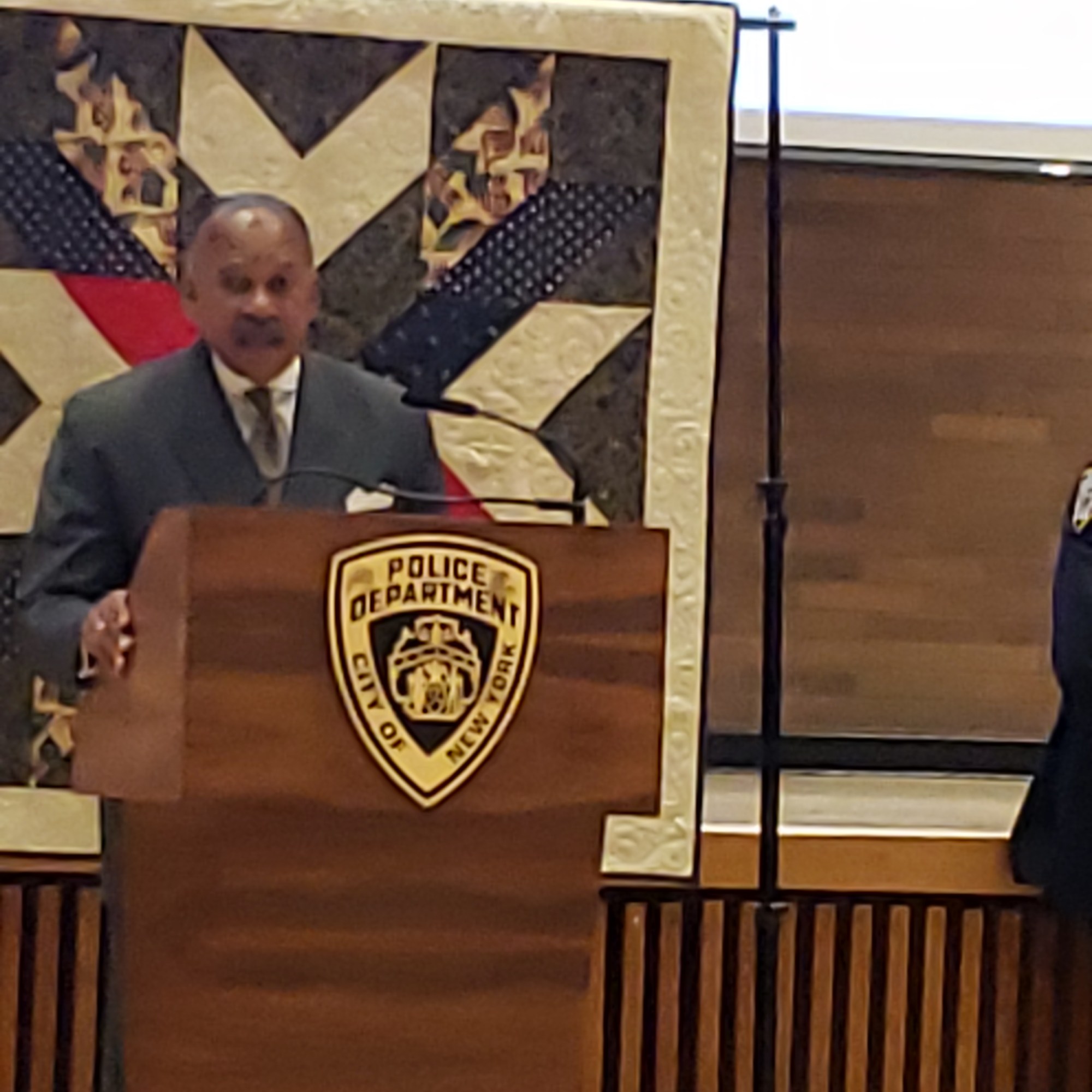 We are grateful that NYPD 1st Deputy Commissioner Benjamin Tucker came and spoke with our Quilts4Cops Labor of Love sewers. He gave an inspiring and heartfelt welcome, as well as encouraged us to continue to sew quilts for cops.